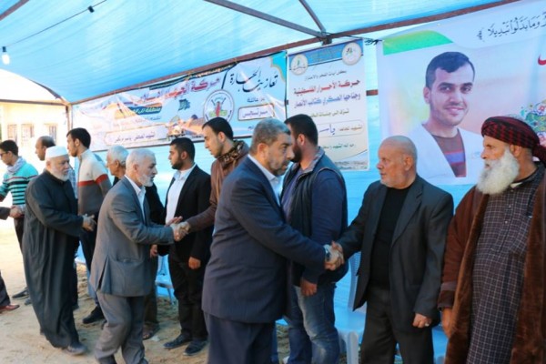 زار وفد نواب كتلة التغيير والإصلاح البرلمانية في المحافظة الوسطى بحضور النائب الأول لرئيس المجلس التشريعي بيوت عزاء شهداء مسيرة العودة الكبرى، وشملت الجولة بيت عزاء الشهيد صدقي فرج أبو عطيوي، وبيت عزاء الشهيد حمزة عبد العال، وبيت عزاء الشهيد ابراهيم العر، وضم وفد النواب النائب د. سالم سلامة والنائب د. عبد الرحمن الجمل وبحضور النائب محمد فرج الغول والنائب جمال نصار.