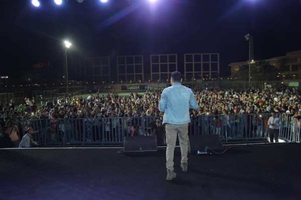 وقام بغناء العديد من اشهر أغانيه منها (العوو) و(الشحن فصل) و (حب دروشني) و غيرها العديد وسط اجواء من الرقص والبهجة بين الحضور والحفل من تنظيم المنتج وليد منصور .
