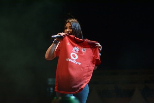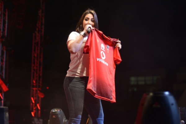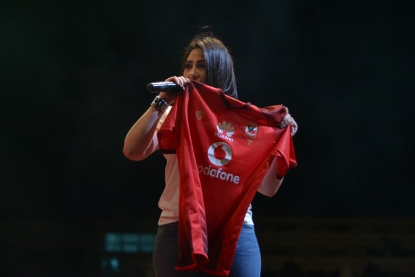 صور:بوسي تحمل"فانله" الاهلى وتشكر الخطيب فى حفل الربيع بالنادي الاهلى
