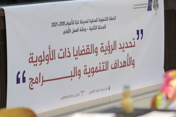 عقدت بلدية غزة ورشة عمل لتحديد الرؤية والقضايا ذات الأولوية والأهداف التنموية للمدينة ضمن المرحلة الثانية من الإعداد للخطة التنموية المحلية للمدينة خلال الأعوام الأربعة المقبلة 2018 – 2021 .