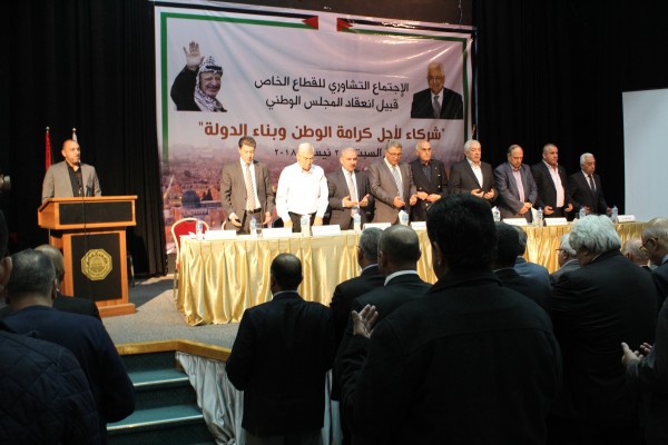 واكد المشاركون على دعمهم وتاييدهم الكامل لعقد دورة المجلس الوطني الفلسطيني باعتباره البرلمان والمشرع للكل الفلسطيني، وطالبوا كافة الوان الطيف الفلسطيني المشاركة في اعمال دورته في هذا الظرف الحساس الذي يعصف بالقضية الفلسطينية، والذي يستدعي من الكل الفلسطيني الالتئام تحت مظلة الشرعية الفلسطينية والالتحام صفا واحدا في مواجهة ما يحاك ضد قضيتنا العادلة ومشروعنا الوطني المتمثل باقامة الدولة الفلسطينية وعاصمتها القدس وعودة اللاجئين، والدعوة لانهاء الانقسام نحو تحقيق الوحدة الوطنية. كما وجه المجتمعون الدعوة للمجلس الوطني بتبني الخطة الاقتصادية التي تم عرضها خلال الاجتماع باعتبارها اساسا لصياغة خطة اقتصادية تفصيلية وشاملة نحو الانفكاك من الاحتلال وتحقيق مقومات الدولة الفلسطينية، وباعتبار القطاع الخاص شريك اساسي في حمل المسؤولية الوطنية ومكمل للنضال السياسي.