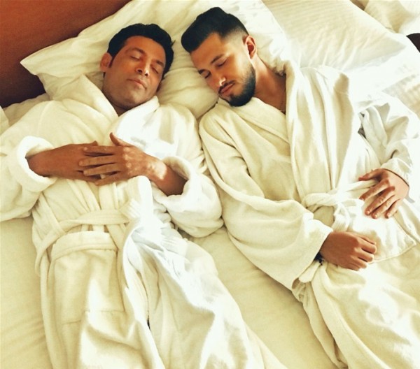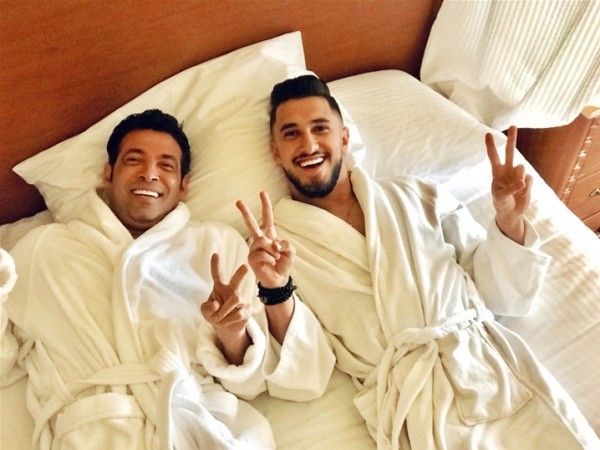 شارك الفنان الشعبي المصري سعد الصغير متابعيه مجموعة صور نشرها على إحدى صفحاته الخاصة عبر مواقع التواصل الاجتماعي، ظهر فيها إلى جانب ابنه محمود الصغير وهما مرتديان ثوب الحمام على السرير.
