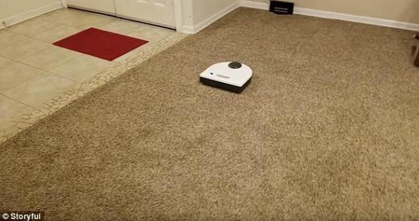 ثم يعطيها أمرًا بتشغيل المكنسة الكهربائية، وتستجيب بالفعل، وتقوم بإعطاء المكنسة أمرًا من بعيد؛ لتقوم بمهمة الكنس، ثم تبدأ المكنسة الكهربائية في الزاوية البعيدة من الغرفة في العمل.