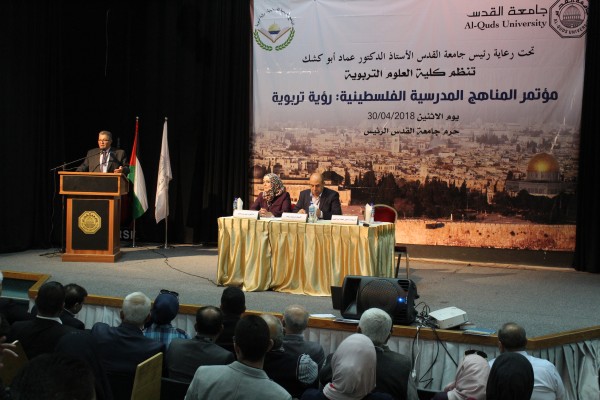 عقدت جامعة القدس مؤتمرها التربوي، بعنوان "المناهج المدرسية الفلسطينية .. رؤية تربوية"، انطلاقاً من ايمانها بدورها المجتمعي ومسؤوليتها تجاه القضايا التربوية، وتزامناً مع عملية تطوير وزارة التربية والتعليم العالي للمناهج المدرسية، وتسليط الضوء على أثر المناهج المدرسية على الطالب والمعلم، ودور الكتب في ترسيخ قيم المواطنة.