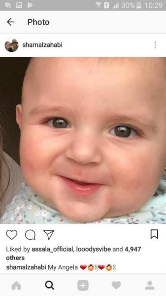 نشرت شام الذهبي إبنة الفنانة أصالة نصري صورة لأختها من والدها أيمن الذهبي، عبر حسابها الرسمي على موقع "إنستقرام وعلقت عليها "My Angela".