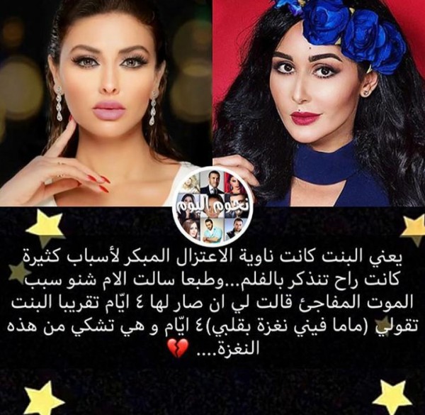 أطلت الفنانة مريم حسين عبر "سناب شات" وكشفت المزيد من التفاصيل التي تتعلق بوفاة الفنانة الراحلة وئام الدحماني، كما أشارت إلى أنها دخلت المشرحة حيث كان جثمانها، وأن وئام كانت تشكو قبل وفاتها من "نغزات" في القلب، كما حرصت على حفظ سورة البقرة، وأنها كانت تنوي إنتاج فيلم عن قصة حياتها وكانت تنوي الإعتزال.
