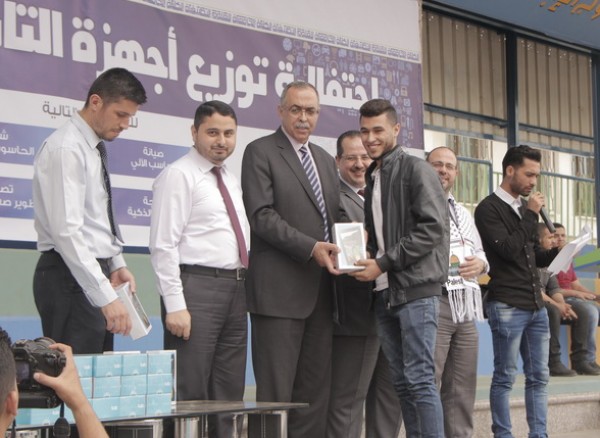 وفي ختام الاحتفالية تم توزيع أجهزة الـ Tablet المتطورة على طلاب اختصاصي صيانة الحاسب الآلي وشبكات الحاسوب والانترنت التابعين لقسم تكنولوجيا الحاسوب والمهن الصناعية، وعلى طلاب اختصاصي تصميم وتطوير صفحات الويب وبرمجة تطبيقات الهواتف الذكية التابعين لقسم تكنولوجيا المعلومات.