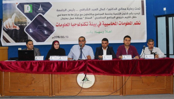 عقدت شئون التنمية وخدمة المجتمع بجامعة الأقصى ورشة عمل حول نظم المعلومات المحاسبية في بيئة تكنولوجيا المعلومات بالشراكة مع مركز learn to be للتدريب والتطوير بالإضافة إلى تكريم ثلة من المتدربين (أوائل الطلبة – خريجين/ ات) الذين حصلوا على تدريب مكثف ومجاني لبرنامج المحاسب الذكي " الممتاز".