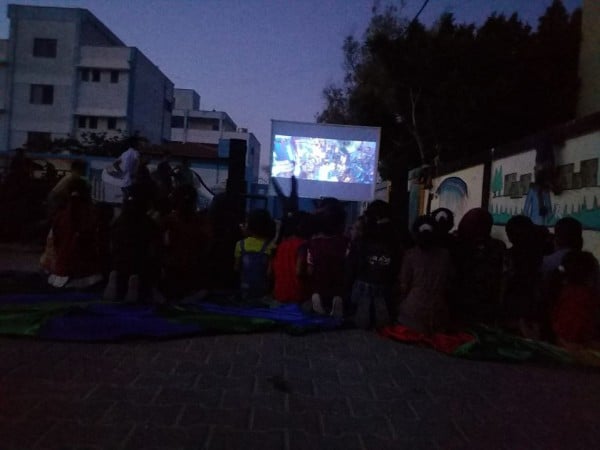 وعبر الطفل أحمد أبو عيادة عن فرحته الشديدة بهذه المبادرة التي تعتبر الأولى من نوعها في المنطقة، قائلاً أن الفيلم أنساه ساعات انتظار عودة التيار الكهربائي ليتمكن من مشاهدة الرسوم المتحركة في منزله، مضيفاً أنه منذ الساعة السابعة صباحاً لم تصل الكهرباء منزله كما أنه يمر بفترة اختبارات وقد مل من جو الدراسة فكانت هذه المبادرة مخرجاً له من ضغط القراءة.