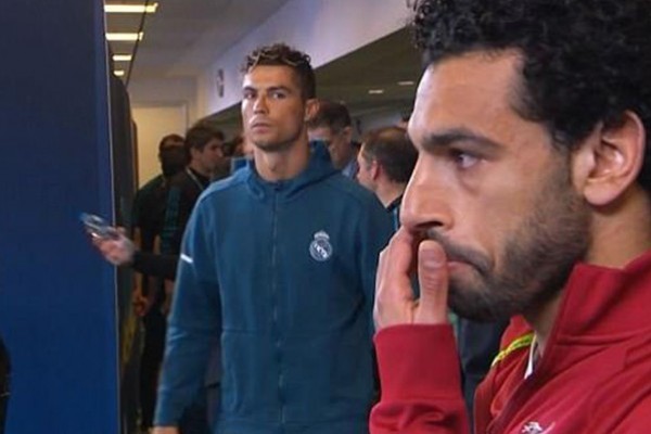 صورة نشرتها صحيفة ديلي البريطانية ووصفتها بأنها نظرة الشر من كريستيانو رونالدو نجم نجوم ريال مدريد إلى محمد صلاح قبيل بداية المباراة وقالت الصحيفة إن جماهير ليفربول تحمل راموس مسئولية خسارة الفريق.