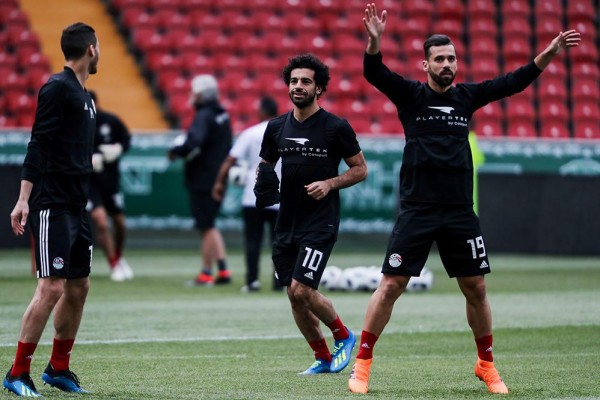 ونزل صلاح بداية الى أرض ملعب التدريب في العاصمة الشيشانية غروزني مع اللاعبين. وبعد حوار قصير مع المدرب الأرجنتيني هكتور كوبر، بدأ اللاعبون بتمارين الاحماء، بينما توجه نجم نادي ليفربول الانكليزي الى جانب آخر من الملعب وبدأ بتمارين هرولة خفيفة، بمتابعة من الطاقم الطبي للمنتخب.