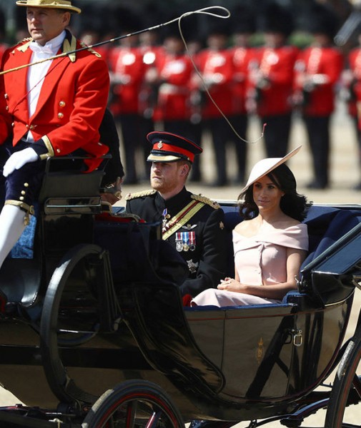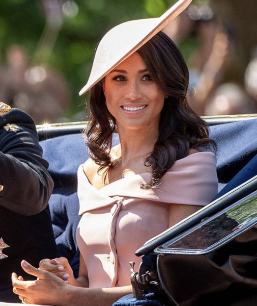 ففي احتفال بريطانيا بعيد ميلاد الملكة إليزابيث الـ92، والذي يُطلق عليه اسم Trooping The Colour، وصلت دوقة ساسكس "ميغان ماركل" إلى جانب زوجها الأمير هاري، بإطلالة وردية ناعمة، اختارتها من علامة "كارولينا هاريرا".