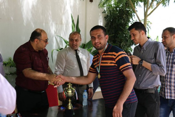 حضر مراسم المباراة النهائية والتتويج د. عدنان الحجار رئيس الجامعة وأ. حجازي القرشلي مدير دائرة الموارد البشرية ود. أحمد الوادية مدير دائرة العلاقات العامة، ود.أنور البنا رئيس قسم علم النفس الاكلينيكي ولفيف من الطاقم الأكاديمي والإداري العامل في الجامعة.