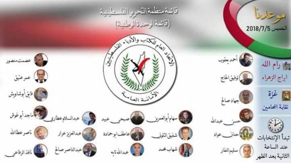 فتح وفصائل المنظمة تخوض انتخابات الكُتاب بقائمة (الوحدة الوطنية)