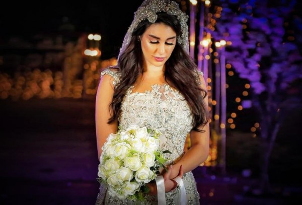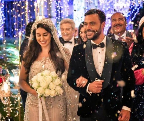 ولفتت العروس ياسمين صبري الأنظار، بسبب جمالها وأناقة فستانها الذي حمل توقيع المصمم اللبناني تيد خوري، واختارت ياسمين صبري طرحة طويلة مع تطريزات لامعة لتزيين تسريحتها.