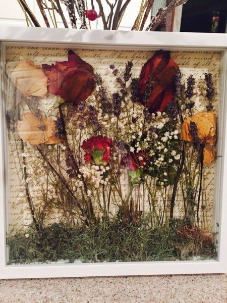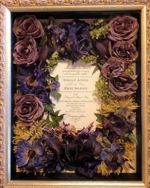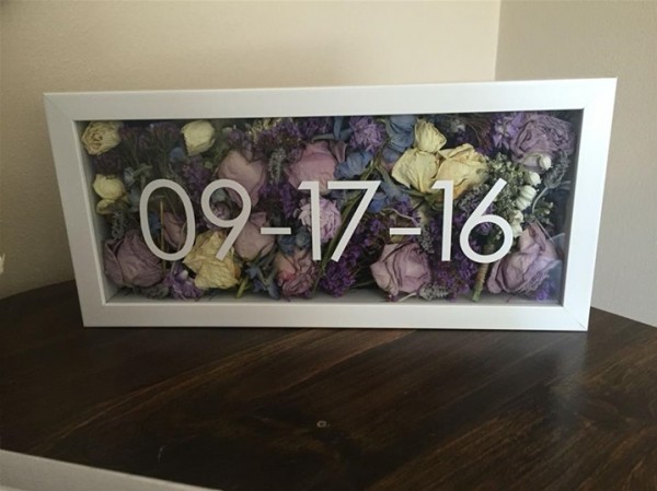 يظهر الاتجاه الجديد تجفيف الأزهار، التي توضع بعناية داخل إطار محاط بالزجاج، مع بعض الصور من الزفاف ويمكن تعليقها بمكان مناسب في المنزل.