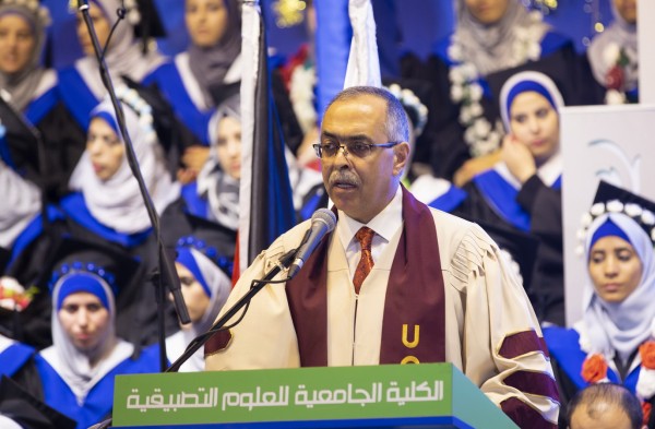 ومع انطلاق وقائع الاحتفال رحب الدكتور محمد العكلوك بالحضور، وقال: " قبل نحو عشرين سنة كانت الكلية الجامعية فكرة وبفضل الجهود المباركة الفكرة أصبحت حقيقة، حيث شقت طريقها لتلبي حاجة المجتمع الفلسطيني في مجال العلوم التقنية والتطبيقية، واعتلت قمة المجد والريادة في هذا الميدان الكبير، فباتت اليوم من أكبر الكليات التقنية في فلسطين، كيف لا وهي تقدم خدماتها الأكاديمية المتميزة لنحو 7 آلاف طالب وطالبة في 85 برنامجا متميزا تم انتقاءها بعناية فائقة لتلبية حاجات سوق العمل المختلفة".