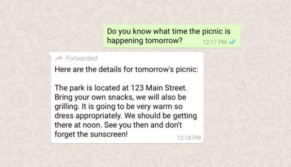 حصل تطبيق واتساب على تحديث جديد خاص بطريقة ظهور الرسائل، حيث أن التحديث أضاف خاصية تُتيح معرفة الرسائل التي تم إعادة ارسالها Forwarded بعد وصولها للمستخدم ولم يتم كتابتها بشكل خاص.