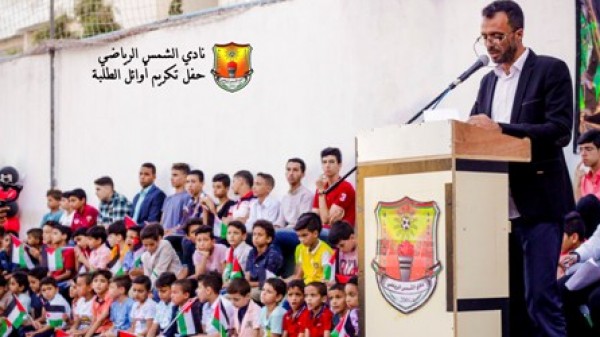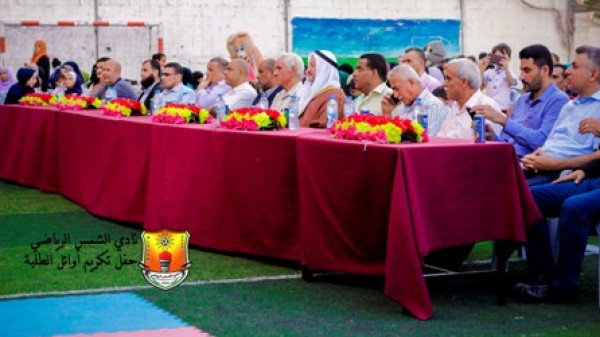 نظم نادي الشمس الرياضي عصر يوم الخميس/ الموافق 12/7/2018 احتفالا رياضياً مميزاً، لتكريم ما يقارب150 طالب وطالبة من المتفوقين المنتسبين لأنشطة النادي ، وأقيم الاحتفال في مقر النادي وذلك بحضور رئيس وأعضاء مجلس إدارة النادي بالإضافة إلي الدكتور محمد صيام مدير عام وزارة التربية والتعليم العالي والأستاذ جمال يوسف مساعد مدير عام الامتحانات بوزارة التربية والتعليم والأستاذ نهرو الحداد عضو المجلس الأعلى للشباب والرياضة و الأستاذ علي أبو حسنين عميد رؤساء الأندية والعديد من مدراء المدارس يتقدمهم الأستاذ نايف الحطاب ولفيف من الوجهاء والمخاتير وأولياء الأمور وأهالي الطلبة المتفوقين .