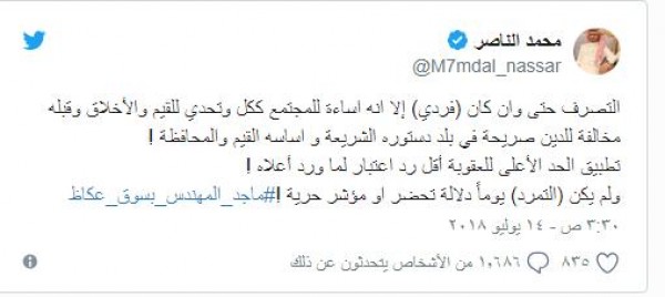 وتساءل بعضهم: كيف تمكَّنت الفتاة من اختراق الرقابة، والوصول إلى خشبة المسرح بهذه السهولة؟! وقد تعرضت الفتاة إلى سيل من الانتقادات، والسخرية في مواقع التواصل عبر هاشتاق أطلق عنها وتصدر الترند السعودي لمدة يومين بعنوان "فتاة_تحضن _ ماجد _المهندس"، وذلك بعد لحظات من الواقعة "الحسَّاسة" عند أداء الفنان ماجد المهندس وصلته الغنائية الأخيرة.