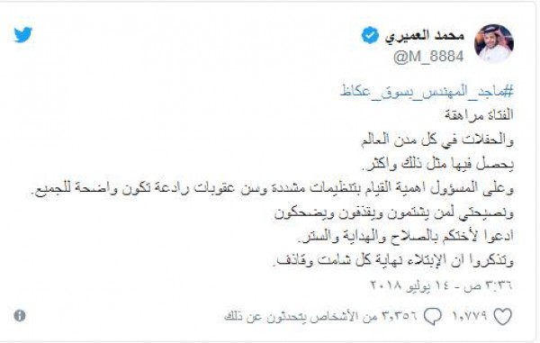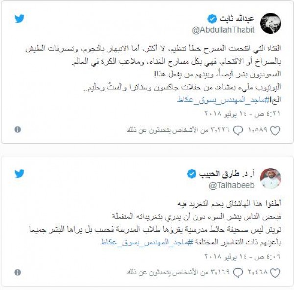 شهدت مواقع التواصل الاجتماعي خلال الأيام الماضية حالة جدل كبيرة بعد انتشار مقطع فيديو من حفل الفنان ماجد المهندس في مهرجان سوق عكاظ بالطائف، تظهر فيه فتاة منقَّبة، تركض في اتجاهه، ثم تحتضنه أمام الجميع، ما استدعى تدخل رجال الأمن لإبعادها عنه.