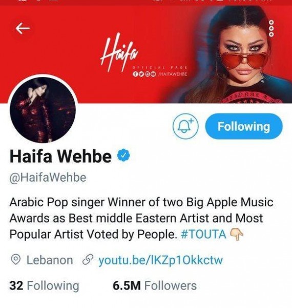 -هيفاء وهبي لم تخسر متابعين وحافظت على نفس العدد قبل وبعد التعديل الطارىء على "تويتر".