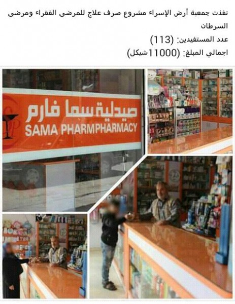كما تم تنفيذ مشروع صرف علاج للمرضى الفقراء حيث استفاد من المشروع (40) مريضاً بمبلغ اجمالي 2000 شيكلاً