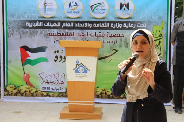 بدورها بيّنت الأستاذة رنا النيرب رئيس جمعية فتيات الغد، أن معرض حكاية العودة يحوي بين جنباته زوايا متعددة تعرض من خلالها مقتنيات شهداء مسيرة العودة وصورهم وسيرة حياتهم باللغة العربية والانجليزية، ويبرز المعرض الابداعات الشبابية المتعلقة بالعودة، داعية لأن يصبح المعرض متحفاً وطنياً لتخليد تضحيات الشعب الفلسطيني.