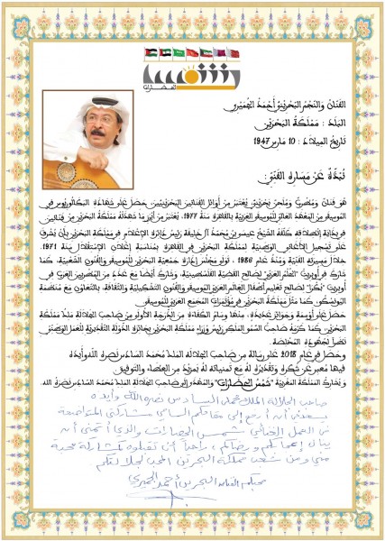 الفنان البحريني وجه بدوره رسالة خطية إلى ملك المغرب عقب مشاركته في الأوبريت، قال له فيها: "صاحب الجلالة محمد السادس نصره الله وأيده، يسعدني أن أرفع إلى مقامكم السامي مشاركتي المتواضعة في العمل الغنائي "شمس الحضارات" الذي أتمنى أن ينال إعجابكم ورضاكم، راجيا أن تقبلوه كمشاركة محبة مني ومن شعب البحرين المحب لجلالتكم"، وفق الصياغة