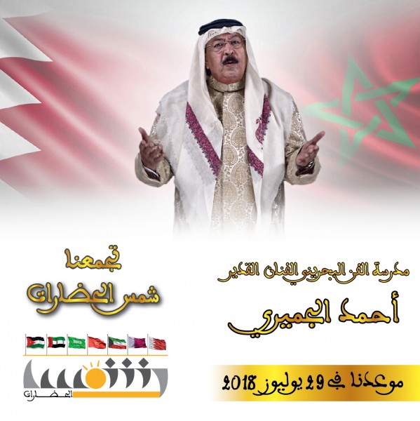 من بين المشاركين في أوبريت "شمس الحضارات" يبرز الفنان المطرب والملحن البحريني أحمد الجميري، الذي سيشارك رفقة عدد من نجوم الغناء العربي في العمل المهدى إلى الملك محمد السادس والشعب المغربي