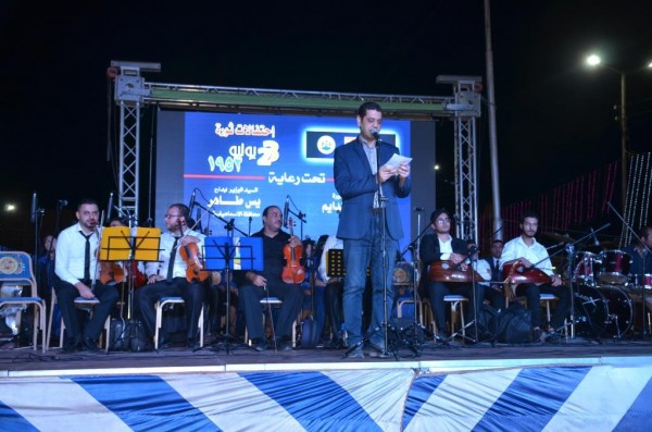 وسط حشد جماهيرى كبير من مواطنى الاسماعيلية وفى اطار الاحتفال بالذكرى السادسة والستين لثورة 23 يوليو المجيدة .. شهد اللواء يس طاهر محافظ الاسماعيلية يرافقه اللواء محمد على حسين مساعد وزير الداخلية مدير أمن الاسماعيلية والمهندس عبد الله الزغبى السكرتير العام المساعد للمحافظة وأشرف فؤاد رئيس مركز ومدينة الاسماعيلية والعقيد عماد ميلاد عزيز المستشار العسكرى للمحافظة وعدد كبير من القيادات الأمنية والتنفيذية بالمحافظة فعاليات الاحتفالية الفنية الكبيرة التى نظمها فرع ثقافة الاسماعيلية تحت اشراف وبحضور الفنان ماهر كمال رئيس الادارة المركزية لأقليم القناة وسيناء الثقافى والتى أقيمت على مسرح حديقة الشيخ زايد المفتوحة أمام مقر ديوان عام المحافظة.