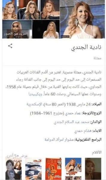 نادية الجندي تحذف 8 سنوات من عمرها وتعدل تاريخ ميلادها على ويكيبيديا