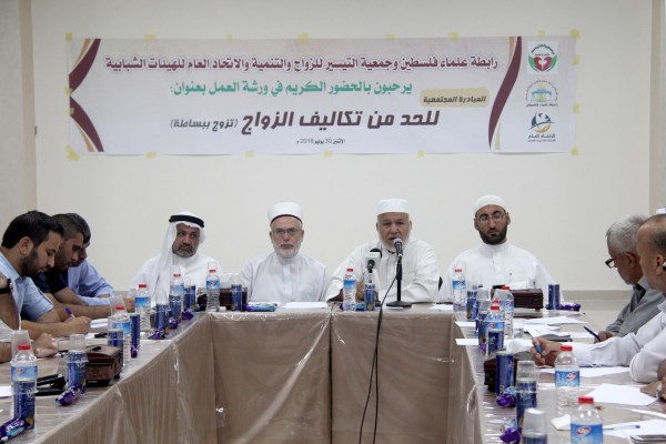 نظمت رابطة علماء فلسطين اليوم ورشة عمل بعنوان: المبادرة المجتمعية للحد من تكاليف الزواج (تزوج ببساطة) وذلك بالتعاون مع جمعية التيسير للزواج والتنمية، والاتحاد العام للهيئات الشبابية، وذلك اليوم الاثنين 30/7/2018 في قاعة الرابطة بمدينة غزة.