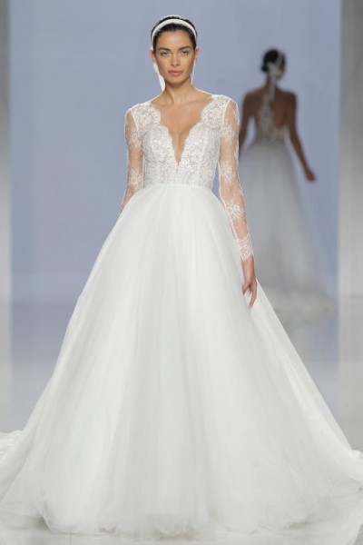 أيضاً تمنحك الفساتين بالقبّة الـV طولاً ونحافة، سواء بقصّة منفوشة مثل فستان زفاف جورج حبيقة Georges Hobeika، روزا كلارا Rosa Clara، وفساتين زفاف سارا نوري Sareh Nouri.