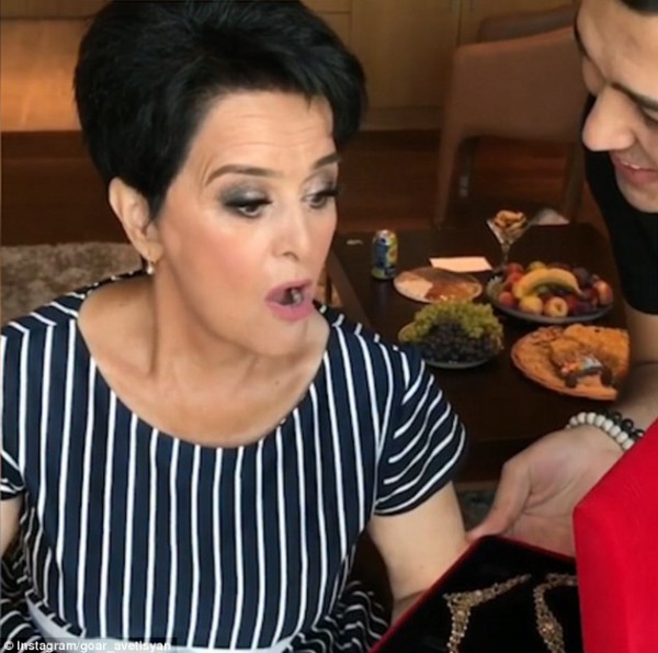 حصلت الأم على إطلالة مميزة جعلتها أصغر سنا مما جعلها تبكي بشدة ثم كشف ابنها عن مفاجأته الثانية وقدم لها قلادة ذهبية رائعة.