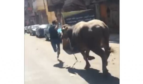 شاهد لحظة هروب عجل من الذبح في شوارع مصر