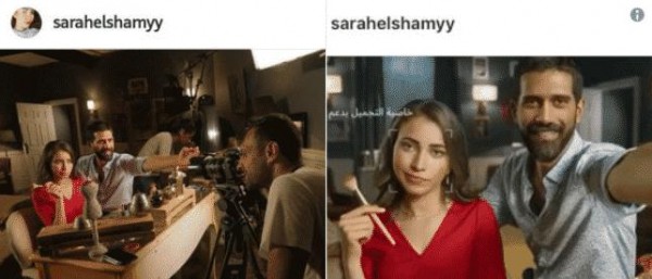 وبداية القصة عندما شاركت سارة الشامي في حملة إعلانية مع ممثل مصري يدعى أحمد مجدي لهاتف محمول، حيث تركز الحملة على قدرات كاميرا الهاتف فائقة الدقة في التقاط صور "السيلفي"، وتظهر سارة مع أحمد مجدي وهو يتظاهر بالتقاط صورة لهما بكاميرا الهاتف المحمول.