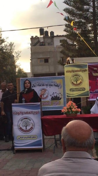 وألقت كلمة الخريجين الطالبة المتفوقة والتي تصدرت أعلى نتيجة لهذا العام في العائلة شمس الحرازين كلمة الطلاب والطالبات الناجحين شاكرة الله ووالديها وعائلتها على مساندتها للحصول على هذا النجاح الباهر .