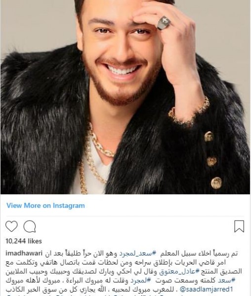 كما كشف الإعلامي اللبناني عماد الهواري الذي حضر أطوار تقديم الفنان المغربي سعد لمجرد أمام المدعي العام ظروف اطلاق سراحه وكتب عبر حسابه على انستغرام: "لغطو يا ناس وافرحوا سعد لمجرد حراً طليقاً قاضي الحريات أمر بإطلاق سراحه ومن لحظات قمت باتصال هاتفي وتكلمت مع الصديق المنتج عاد معتوق وقال لي أحكي وبارك لصديقك وحبيبك وحبيب الملايين سعد كلمته وسمعت صوت سعدوش وقلت له مبروك البراءة ، مبروك لأهله مبروك للمغرب مبروك لمحبيه".