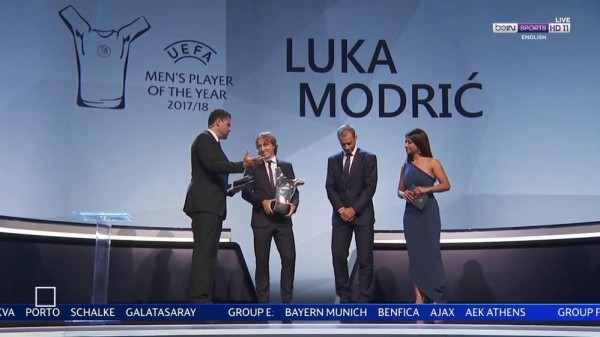 وفاجأ مودريتش الجميع بفوزه بالجائزة، خاصة وأنّ زميله السابق رونالدو، نالها في آخر سنتين، كما كان رونالدو عنصراً مؤثراً في فوز ريال مدريد بلقب دوري أبطال أوروبا الموسم الفائت، وتوّج هدافاً للبطولة برصيد 15 هدفاً، وقد أكّد في أكثر من مناسبة بأنّه يريد الفوز باللقب مع فريقه الجديد يوفنتوس.