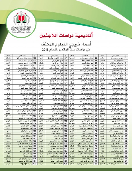 أكاديمية دراسات اللاجئين تعلنُ نتائج الدبلوم المكثف في دراسات بيت المقدس
