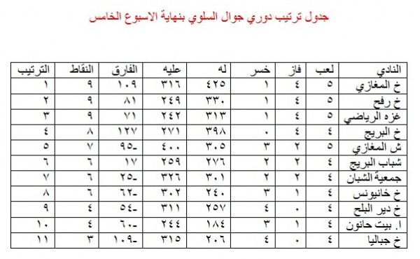 - اكثر الفرق خسارة خدمات دير البلح وخدمات جباليا.