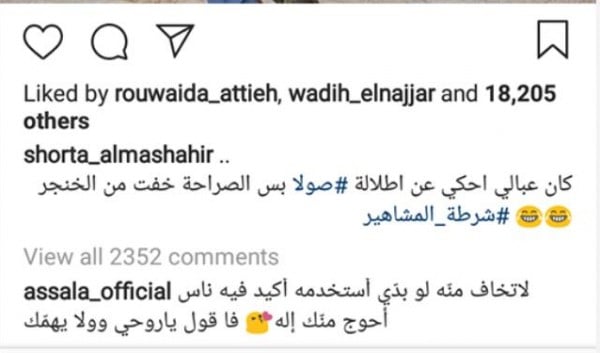 وردت أصالة بكل روح رياضية على إحدى الصفحات، إذ كتبت ساخرة أنها تخشى انتقادها خوفًا من الخنجر الذي ترتديه، قائلة: "لا تخاف منه لو بدي استخدمه أكيد في ناس أحوج منك إله.. قول يا روحي ولا يهمك".