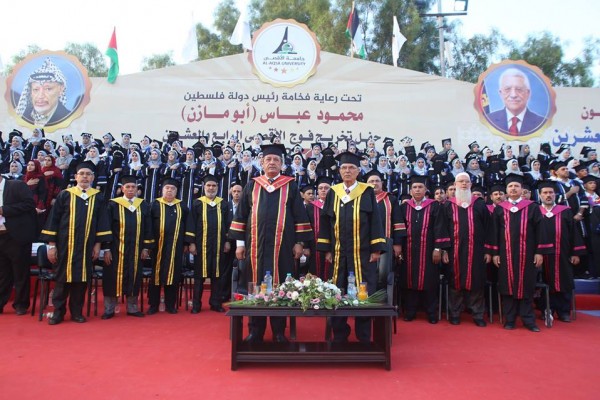 تحت رعاية رئيس دولة فلسطين، تتواصل جامعة لليوم الثاني على التوالي بتخرريج فوجها الرابع والعشرين، وخلال كلمته أعلن رئيس جامعة الأقصى د. كمال العبد الشرافي أنه سيتم تشغيل الطلبة الأوائل بالجامعة لمدة عام، وكذلك تقديم خمس منح للأوائل لدراسة الماجستير في الجامعة، جاء ذلك خلال احتفال الجامعة لليوم الثاني على التوالي بتخريج فوج الأقصى الرابع والعشرين لتتعالى الزغاريد من حناجر الأمهات، والدعوات من قلوب الآباء بفرحة أبنائهم بعد رحلة أربع سنوات من التعب، كان ذلكبرعايةٍ من رئيس دولة فلسطين محمود عباس ( أبو مازن) ، ووزير التربية والتعليم العالي د. صبري صيدم، ورئيس
