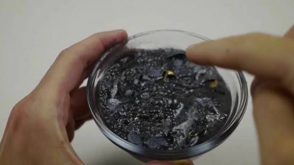 وبعد مزج جهاز آيفون x في الخلاط، قام الشاب بوضع البقايا في الوعاء ومزجه بالماء، مما أنتج سائلًا رماديًا غامضًا.