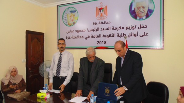 جاء ذلك خلال قيامه بتوزيع مكرمة الرئيس محمود عباس على أوائل طلبة الثانوية العامة (الإنجاز) للعام الدراسي 2017-2018م في كافة الفروع الدراسية بمحافظة غزة.
