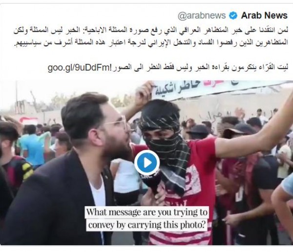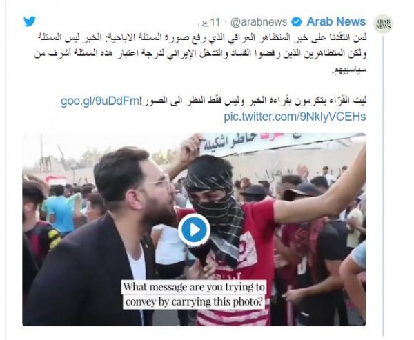 ونشرت الصحيفة توضيحًا عبر حسابها في موقع "تويتر" قالت فيه: "لمن انتقدنا على خبر المتظاهر العراقي الذي رفع صورة الممثلة الإباحية: الخبر ليس الممثلة ولكن المتظاهرين الذين رفضوا الفساد والتدخل الإيراني لدرجة اعتبار هذه الممثلة أشرف من سياسييهم. ليت القرّاء يتكرمون بقراءة الخبر وليس فقط النظر إلى الصور!".