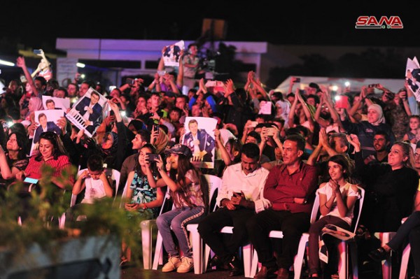 أحيا النجم العربي وليد توفيق المهرجان الفني لمعرض دمشق الدولي "60"، وقدَّم خلال حفله الغنائي بمناسبة افتتاح المعرض، عدداً من الأغاني الجديدة والقديمة وبدأه بتوجيه التحية لسورية الحبيبة ولشام الياسمين ثم أهدى أغنية جديدة لسورية تحمل اسم “شامي وسمارو حلو” من ألحانه وكلمات الشاعر العراقي كاظم السعدي ذكر بها مدن سورية وما ترمز إليه من قيم جمالية وحضارية وأخلاقية، داعياً المغتربين السوريين للعودة للوطن.