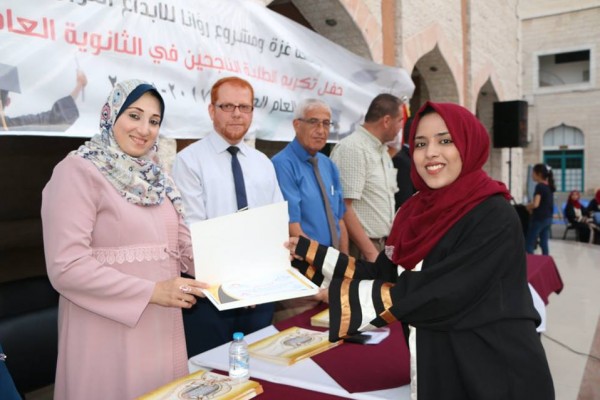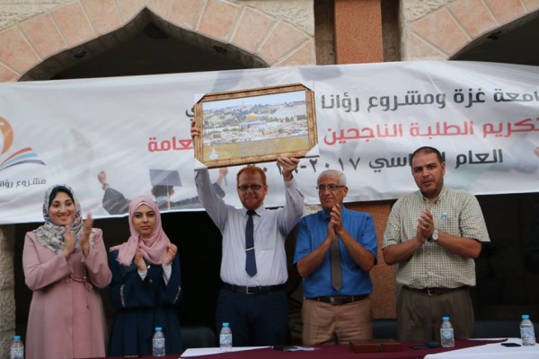 في حفل بهيج كرمت جامعة غزة طلبة مشروع رؤانا للإبداع التربوي الناجحين في الثانوية العامة داخل حرم الجامعة بحضور الأستاذ الدكتور عبد الجليل صرصور رئيس الجامعة والمهندس إيهاب العالول نائب رئيس الجامعة للشؤون الإدارية والمالية والدكتور إبراهيم أبو رحمه عميد شؤون الطلبة والأستاذ وليد الأغا مدير مشروع رؤانا التربوي ، ويأتي هذا التكريم ضمن فلسفة وسياسة جامعة غزة القائمة على التواصل مع مؤسسات المجتمع المدني وخاصة مؤسسات التعليم التي تعتبر طريق النجاح للجامعة .
