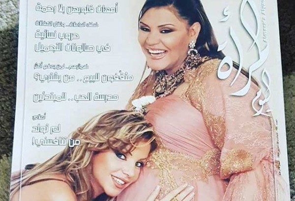 الصورة مأخوذة من غلاف مجلة لبنانية تصدر باسم "المرأة اليوم" في شهر مارس لعام 2004، وعليها صورة لـ أحلام وهي حامل في أول أبنائها بينما تظهر رزان مغربي تضع رأسها على بطن أحلام.